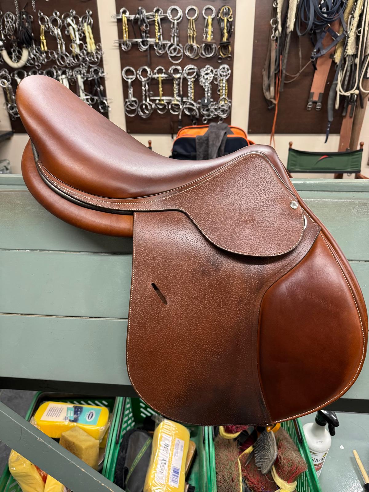 Butet jumping saddle - Immaculate condition 202218" seatStandard width2.5 flapsGrain calfGold finishingLarge blocksOwner : BruceLocation : West SussexGet in touch with us for more information !